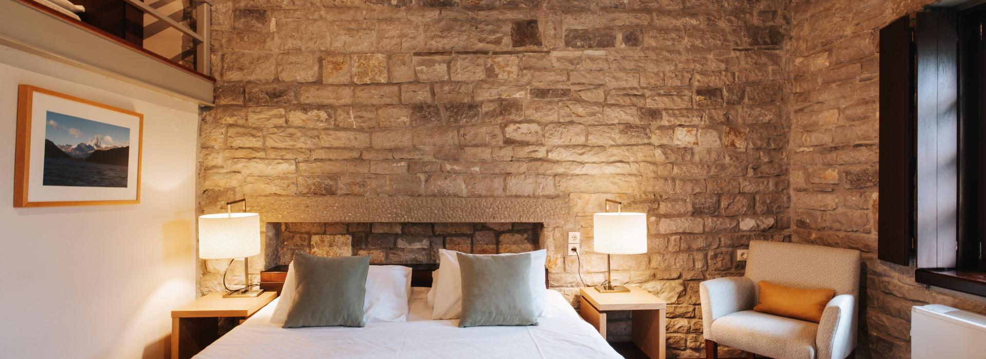 Unwind in one of our 26 rooms distributed across 8 separate buildings, interconnected by an outdoor garden. Each room features its own entrance and private balcony, allowing you to connect with nature while ensuring your safety. Constructed exclusively from stone and wood, each living space emanates an ambiance of intimacy, warmth, and subtle luxury to make your stay with us worthwhile.